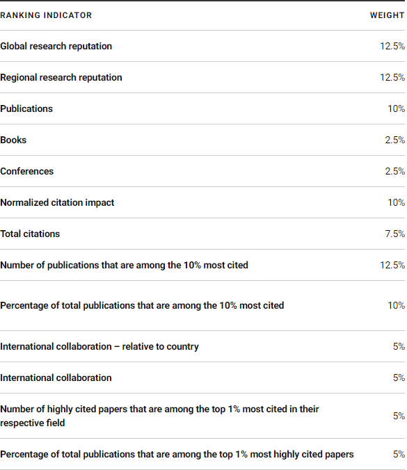 此次USNews排名依據以下13個指标: