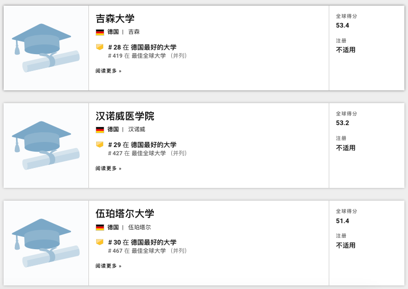 排名世界301-400的德國(guó)大學(x拍行ué)有5所,包括: