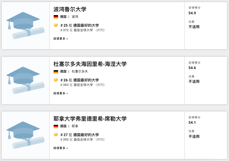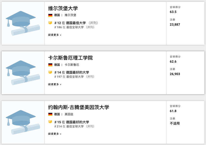排名世界401-500的德國(guó)物用大學(xué)有8所,包括: